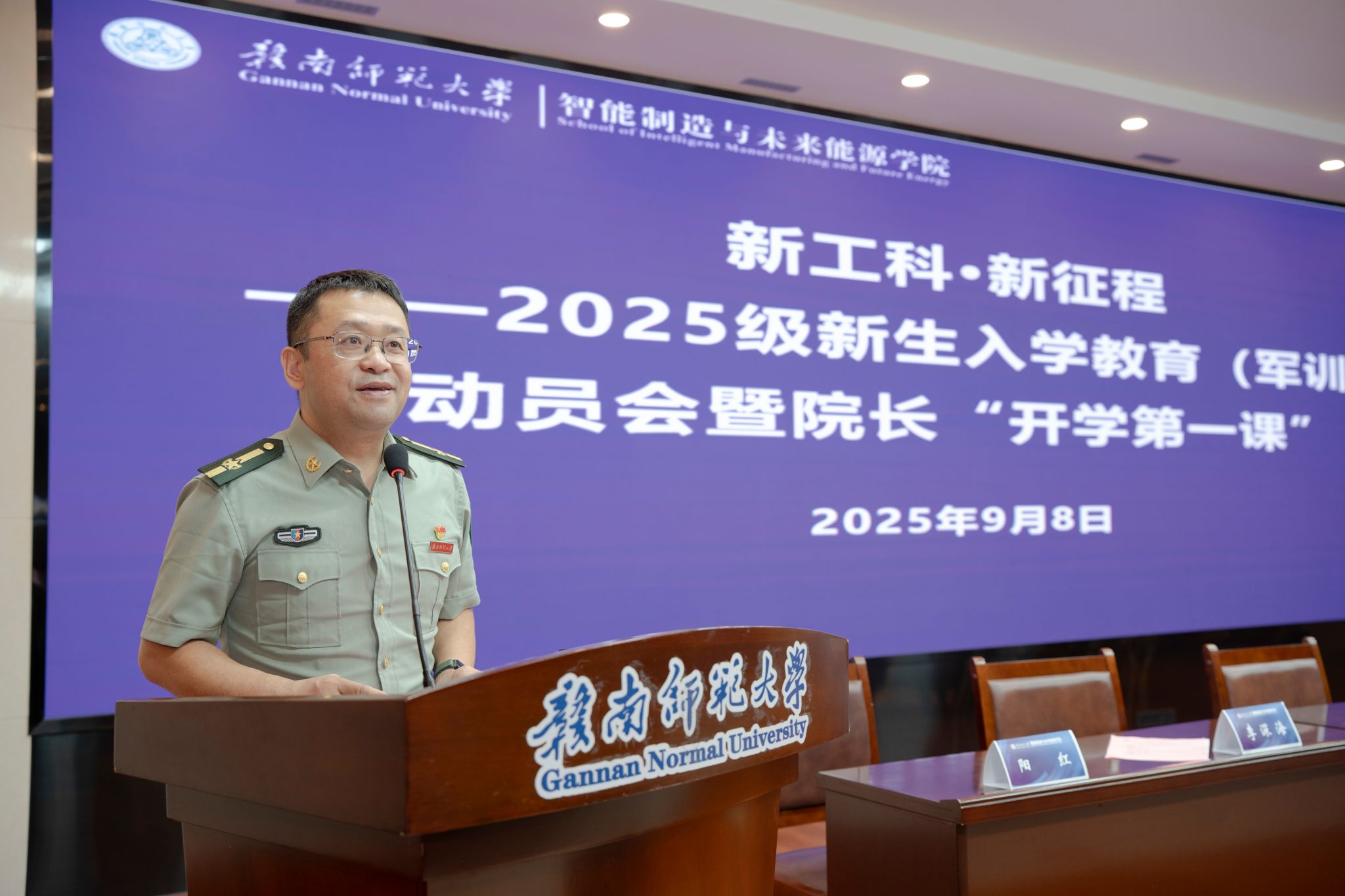 秋兰飘香,启航新程。9月8日上午,智能制造与未来能源学院2025级新生入学教育(军训)动员会暨院长“开学第一课”在图书馆科报厅举行。学院党政领导、教师代表、全体辅导员、新生班主任、军训教官助理及全体首届本科生齐聚一堂,共同见证这一历史性时刻。大会由学院党委负责人黄晖主持。